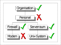 Die Struktur der Informationstechnik in einer Behörde oder einem Unternehmen ist in der Regel durch eine gewachsene Vernetzung gekennzeichnet. Aspekte der IT-Sicherheit sind daher oftmals nicht von Anfang an systematisch berücksichtigt, sondern nachträglich in das Gesamtkonzept integriert worden. Hier ist es wünschenswert, als Einstieg in die systematische IT-Sicherheitskonzeption ein Verfahren heranzuziehen, das den bestehenden Strukturen und den bereits etablierten Sicherheitsmaßnahmen Rechnung trägt.